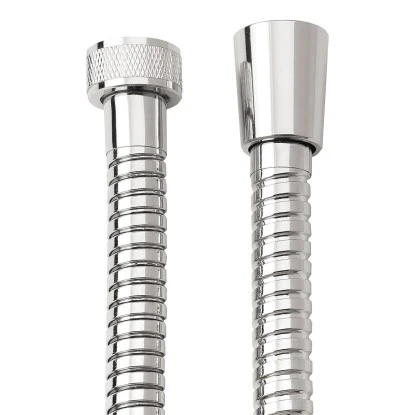 Holen Sie sich dieses praktische Duschset ins Bad. Es besteht aus einstrahliger Handbrause mit Anti-Kalk-Funktion und verdrehsicherem Metall-Brauseschlauch.