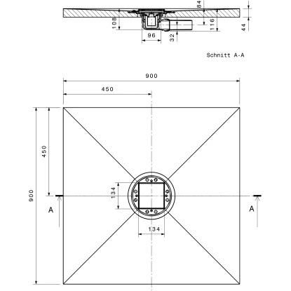 Indigno P verfügt über einen mittigen Punktablauf, der mit einem hochwertigen Edelstahlrost abgedeckt wird. Ebenfalls im Lieferumfang enthalten ist ein waagerechter Ablauf mit normgerechtem Ablaufstutzen DN 50.