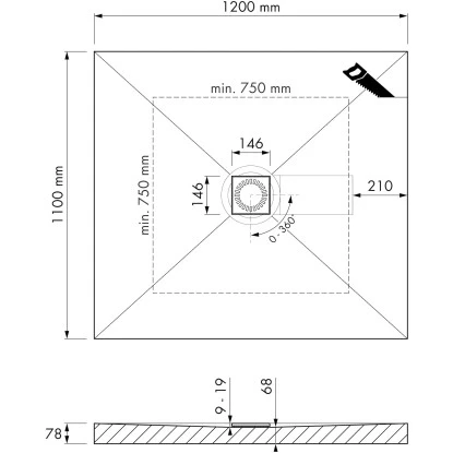 Das Aqua Brillant Duschboard (120 cm × 110 cm) kann bis auf 75 cm x 75 cm eingekürzt werden und ist somit für alle Einbausituationen (Neubau oder Sanierung) geeignet. Das Duschboard ist extrem flach bei einer Bauhöhe ab 68 mm, mit normgerechter Sperrwasserhöhe von 50 mm und variablem Anschluss. Ein Produkt für jede Einbausituation.