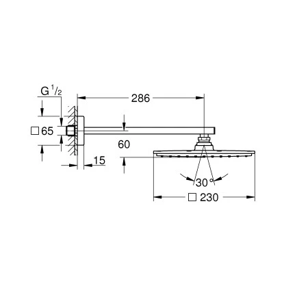 Die Kopfbrause mit großem, viereckigem Auslauf (230 mm Ø) hat einen breiten Strahl der bei Ihnen Zuhause für besondere Duschmomente sorgt. Der Rain Strahl bietet einen angenehmen Wasserstrahl, der einem warmen Sommerregen gleicht. Durch die Ausladung des Brausearms von 286 mm reicht die Brause weit genug in die Dusche, damit Sie mehr Platz für die Körperpflege haben. Dank Grohe DreamSpray wird das Wasser gleichmäßig verteilt, so wird für ein perfektes Strahlbild gesorgt. Dabei lässt sich die Brause besonders leicht von Kalk befreien. Durch das Antikalk-System SpeedClean lassen sich Kalkablagerungen an den Düsen einfach mit dem Finger abwischen.