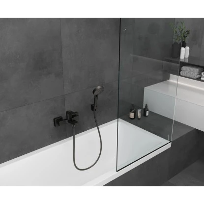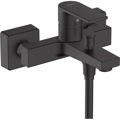 Der Hansgrohe Einhebel-Wannenmischer Vernis Shape Aufputz in Matt Black ist mit ihrem markanten Design und ausdrucksstarken Oberfläche in Matt-Schwarz die ideale Armatur für moderne Badewannen-Lösungen mit kleinem Budget. Dabei eignet sich der Einhebelmischer zur Aufputz-Installation besonders gut für die problemlose Badrenovierung. Die Aufputz-Armatur wird im Handumdrehen auf vorhandene Standard-S-Anschlüsse geschraubt (Größe G 1/2. DN15). Ebenso einfach: An den Wasserauslass für den Duschkopf passt jeder handelsübliche Duschschlauch. Mit ihrer Durchflussmenge von bis zu 22,5 l/min (bei 3 bar) ist die Badewanne schnell befüllt.