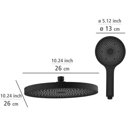 Verwandeln Sie die Duschkabine in ein entspannendes und funktionales Wellness-Paradies mit dem Wenko Duschsystem Softwater Schwarz. Das System bringt alle Elemente mit, die aus der Dusche eine kleine Oase im heimischen Badezimmer machen. Das Duschsystem besteht aus einer hochwertigen Duschstange aus rostfreiem Edelstahl, einem Regenduschkopf (Ø 26), einer Handbrause (Ø 13), einem Duschschlauch und einem Brausegleiter. Die Kopfbrause erzeugt mit 416 integrierten Düsen mikrofeines Wasser, das die Duschroutine zu einem entspannenden Erlebnis macht. Mit 3 Funktionen überzeugt die Handbrause mit ihren 324 Düsen, die ebenfalls über die Micro-Softwater-Funktion verfügt und sich per Knopfdruck auf Softwater oder Intensive Water umstellen lässt.